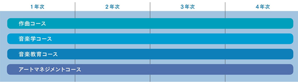 音楽の世界史 音楽心理学(基礎) 現代社会と音楽 現代と音楽ビジネス 音楽指導実践(基礎) ポピュラー・カルチャー論 デジタルメディア進化論 ビジネスマナーとコミュニケーション能力 音楽アナリーゼ(基礎) 音楽アナリーゼ(発展) 楽譜作成ソフトウェア講座 |