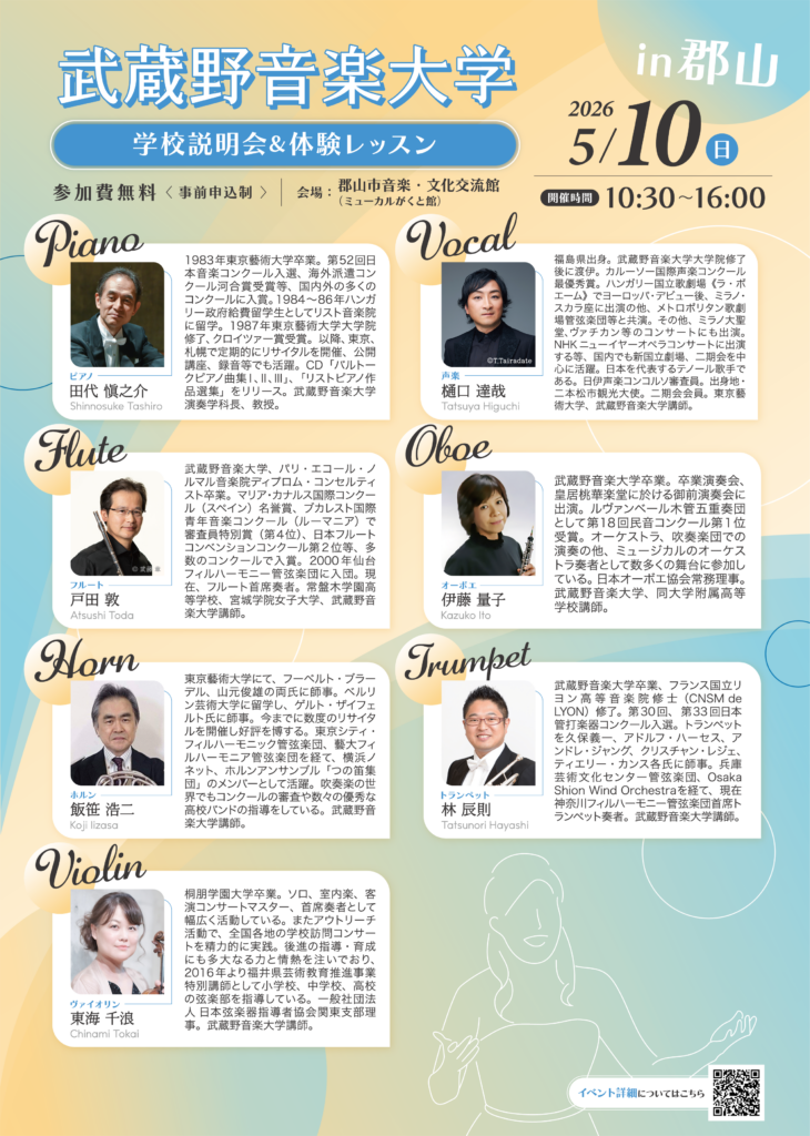 - 楽器や声楽などの指導者の皆様、中学校・高等学校の先生方