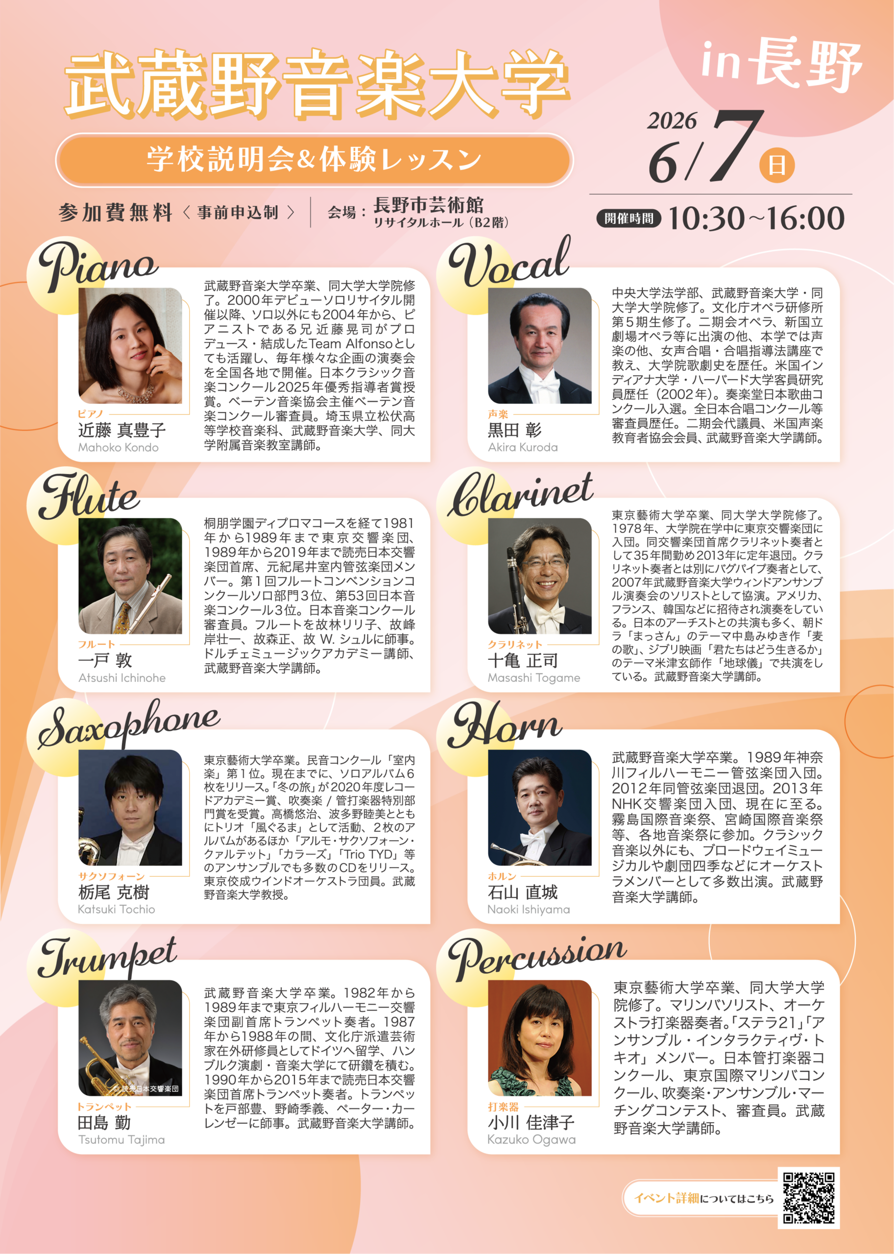 - 楽器や声楽などの指導者の皆様、中学校・高等学校の先生方
