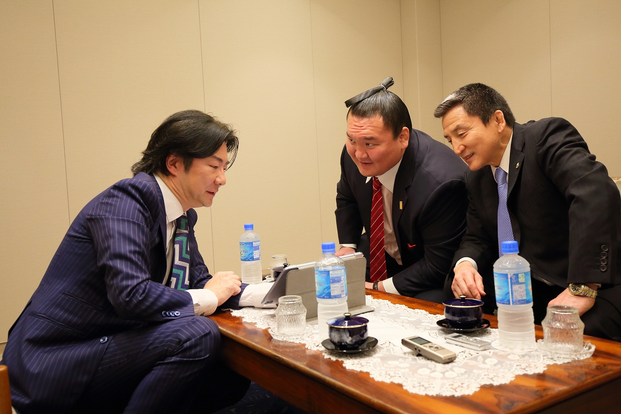 宮城野 日本に来て父への尊敬の念を口にすると、なぜか不思議そうな顔をされましたが、私にとっては、ごくごく自然なことでした。私が6歳の1991年、当時協会理事長を辞められ相撲博物館の館長をなさっていた初代若乃花さんが、NHKの世界の相撲のルーツを辿る番組でモンゴルを訪れ、父と対談したんです。その時私は、若乃花さんからお菓子をいただきました。