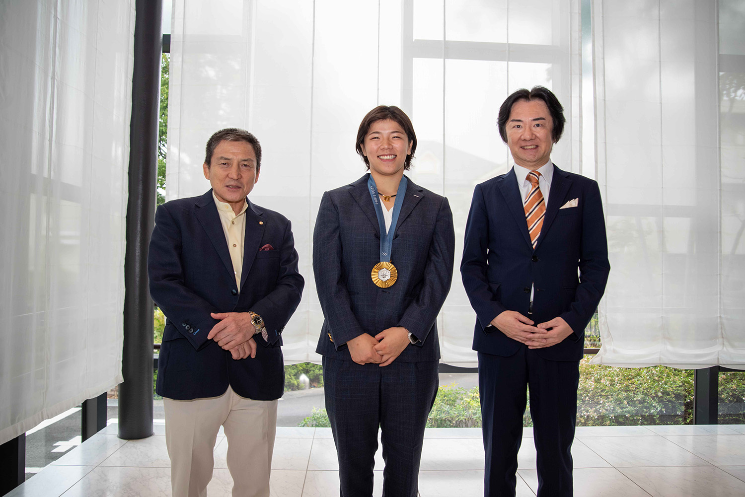 福井 「幸福の黄色いTシャツ」ですね(笑)。さて約2か月経ちましたが、改めまして、レスリング女子最重量級で日本史上初の五輪金メダルを獲得された時の心境をお聞かせください。