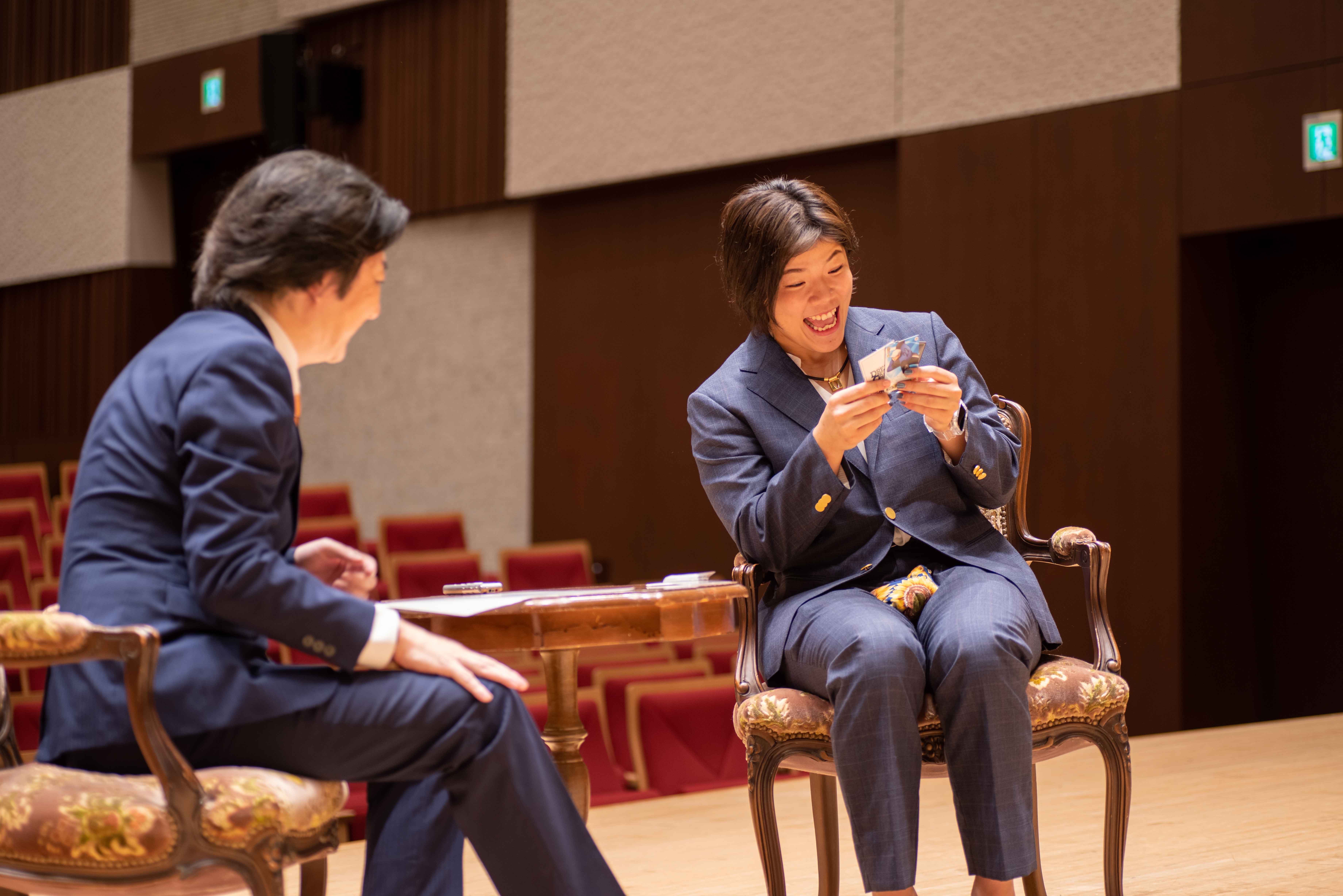 鏡選手Tシャツが福井学長に当たったレスリング日本選手団報告会にて(2024年9月27日 明治記念館)