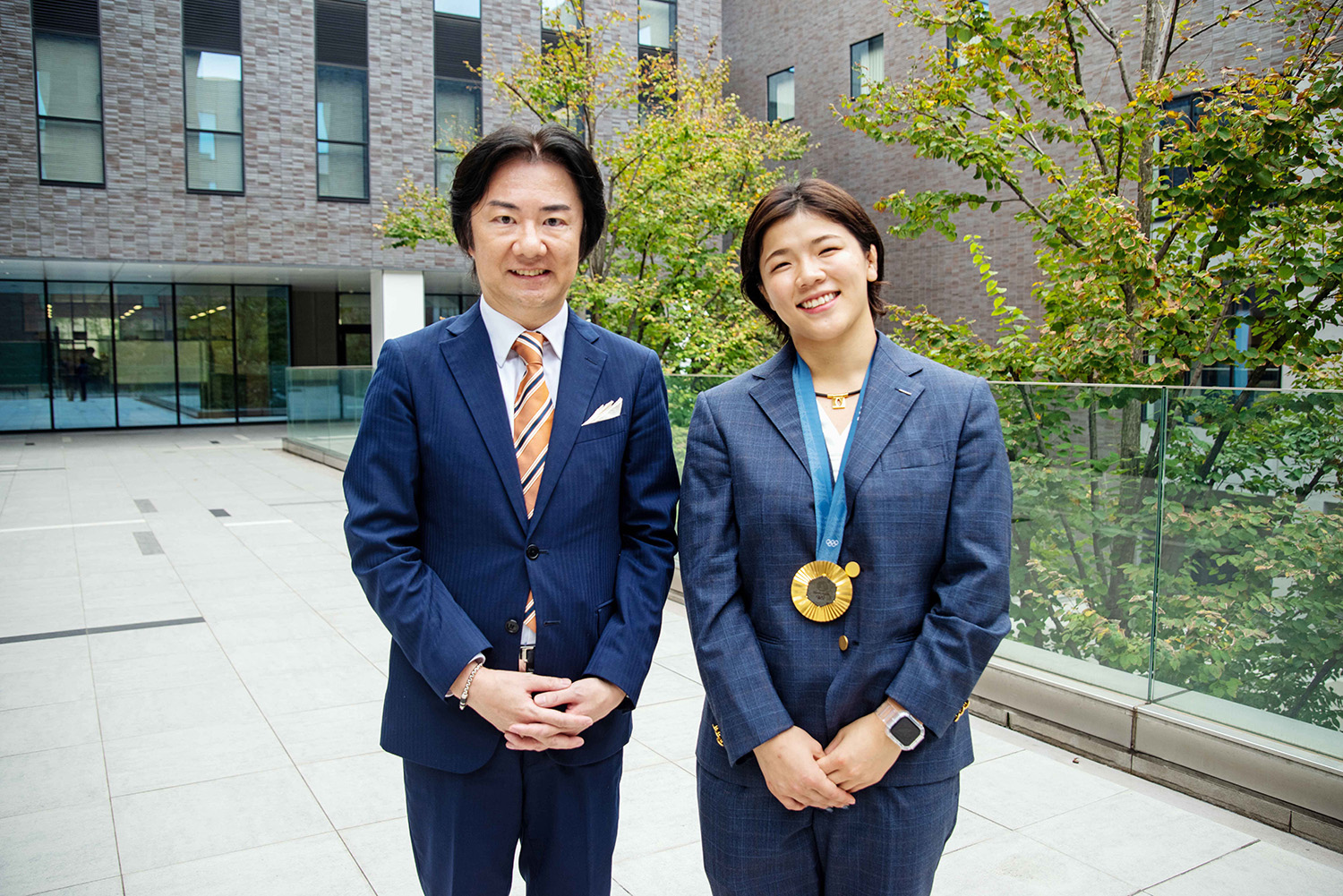 鏡 これまで五輪で金メダルを取ることに人生をかけてきたので、今後こんなに一生懸命になれることがあるのかな、燃え尽き症候群になっちゃわないかなと、今少し不安なんです。でも、金メダルは誰もが取れることじゃないので、この経験を何も活かさなかったら勿体ない。だからレスリングの普及をしながら、スポーツの持つ意義といったものも伝えていきたいと考えています。亡くなった祖父の話なのですが、ある難病にかかって杖をついていたのに、私の試合を応援しに来るってなった時に、杖要らずでスタスタ歩くようになったんですよ。世界選手権の時も肺炎気味だったのですが、私が優勝した瞬間に治っちゃったんです。帰国後すぐ会いに行ったら、感情も顔に出るぐらいめちゃくちゃ元気で。やっぱりスポーツには何かそういう効果があると感じました。高齢化がさらに進む今後、活力ある健全な社会の形成に対するスポーツの意義を、自らの経験も含めて研究していきます。