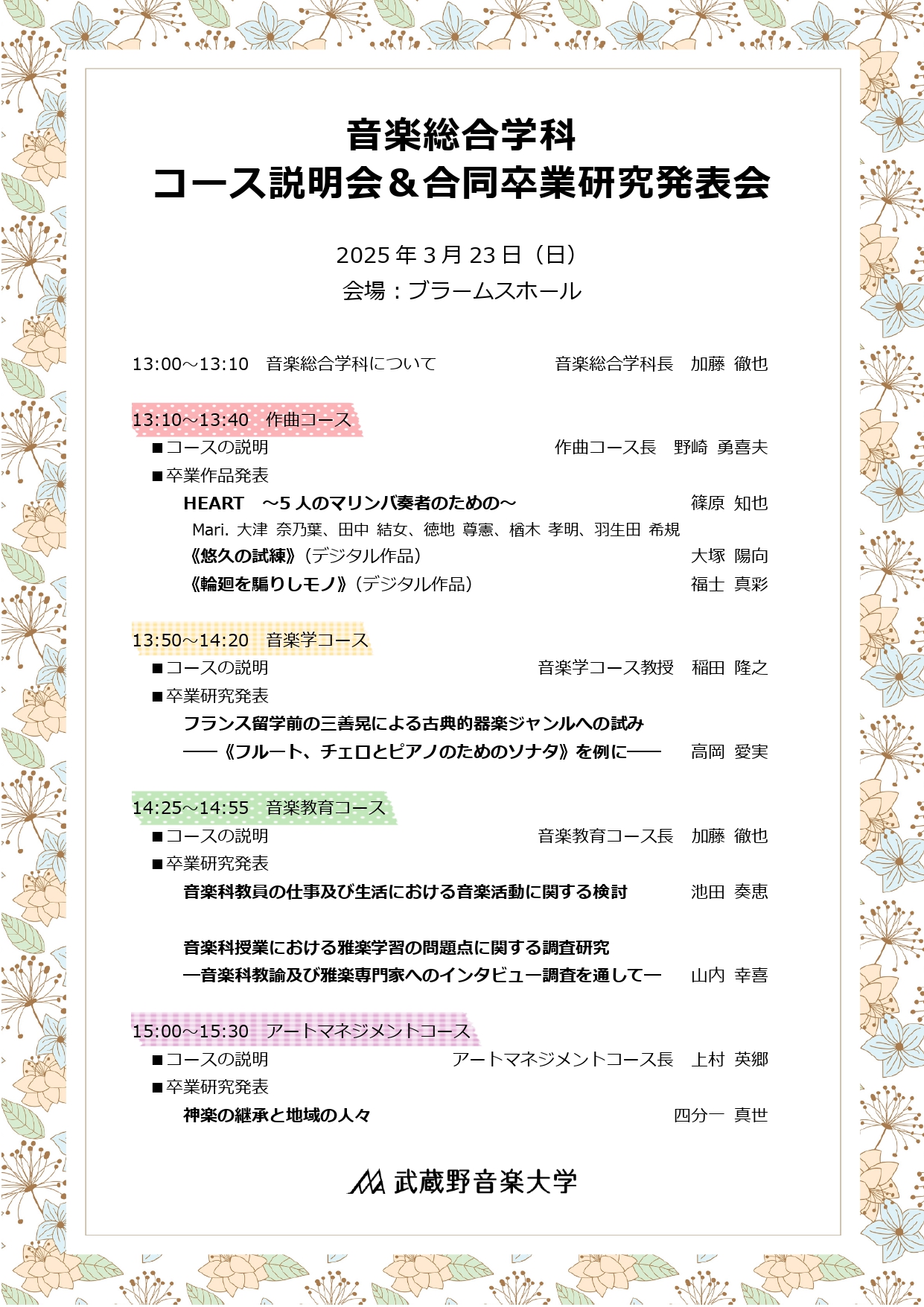 2025年3月23日(日)音楽総合学科 コース説明会&合同卒業研究発表会