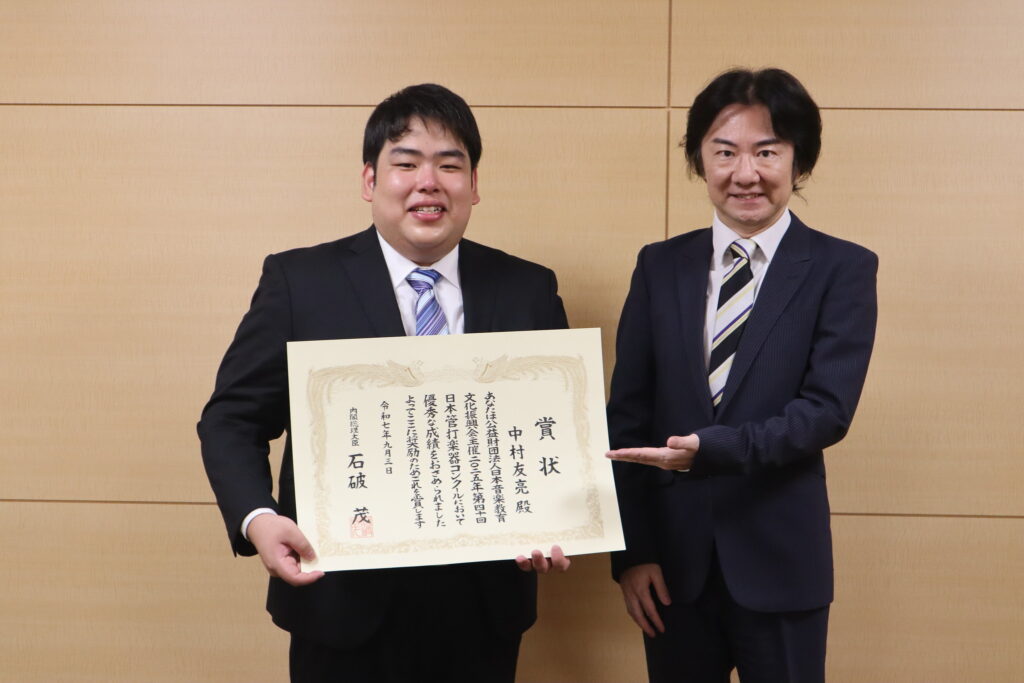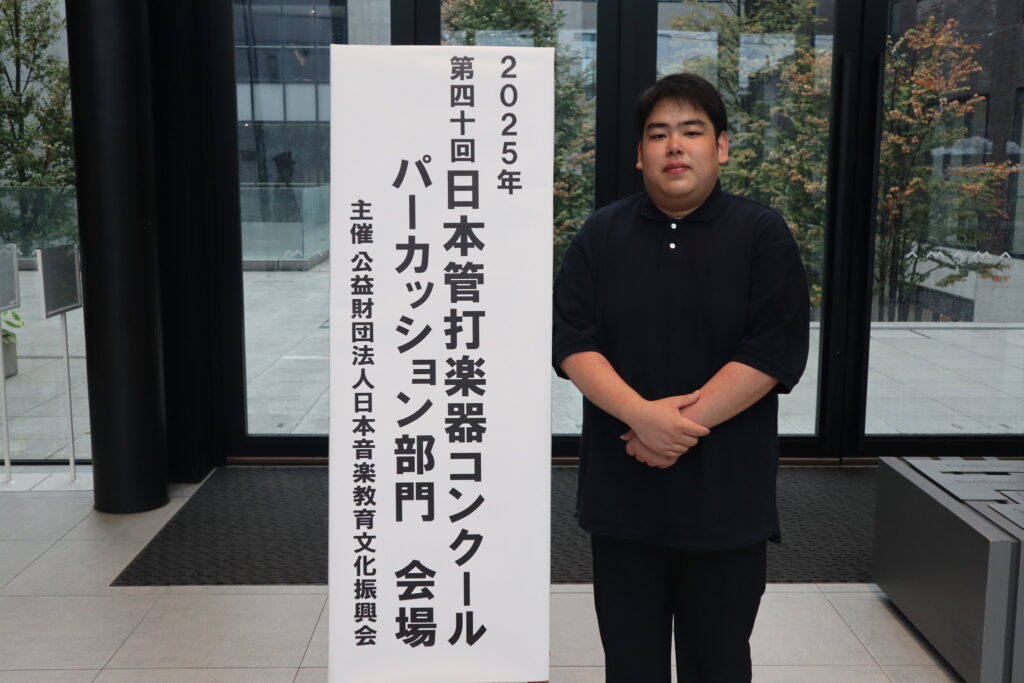 2025年8月に開催された「第40回日本管打楽器コンクール」パーカッション部門にて第1位及び特別大賞・内閣総理大臣賞を受賞した、中村友亮さん(音楽学部ヴィルトゥオーゾコース4年)よりメッセージが届きました。