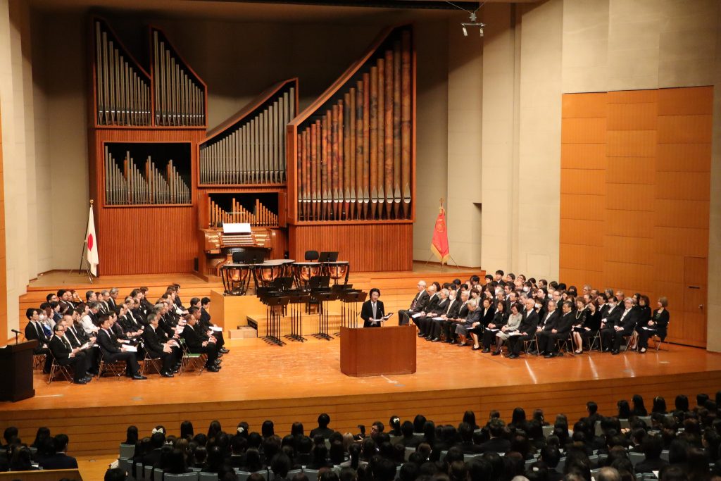 令和8年度 音楽学部・大学院・別科の入学式を挙行しました 2026.04.08 お知らせ 4月1日(水)に「令和8年度 武蔵野音楽大学 音楽学部・大学院・別科 入学式」が本学ベートーヴェンホールにて執り行われました。オルガンの前奏から厳かに開式し、福井学長が式辞を述べられ、最後には本学の伝統である、R.シュトラウス作曲ウィーン・フィルハーモニーのためのファンファーレが華やかに演奏され閉式しました。 新着情報一覧に戻る