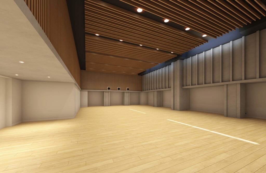 体育の授業や、合奏スタジオとして多目的に使用が可能です。天井高さ約5m の大空間にはトップライト(天窓)を設けており、1日の光の移ろいを感じることができるでしょう。